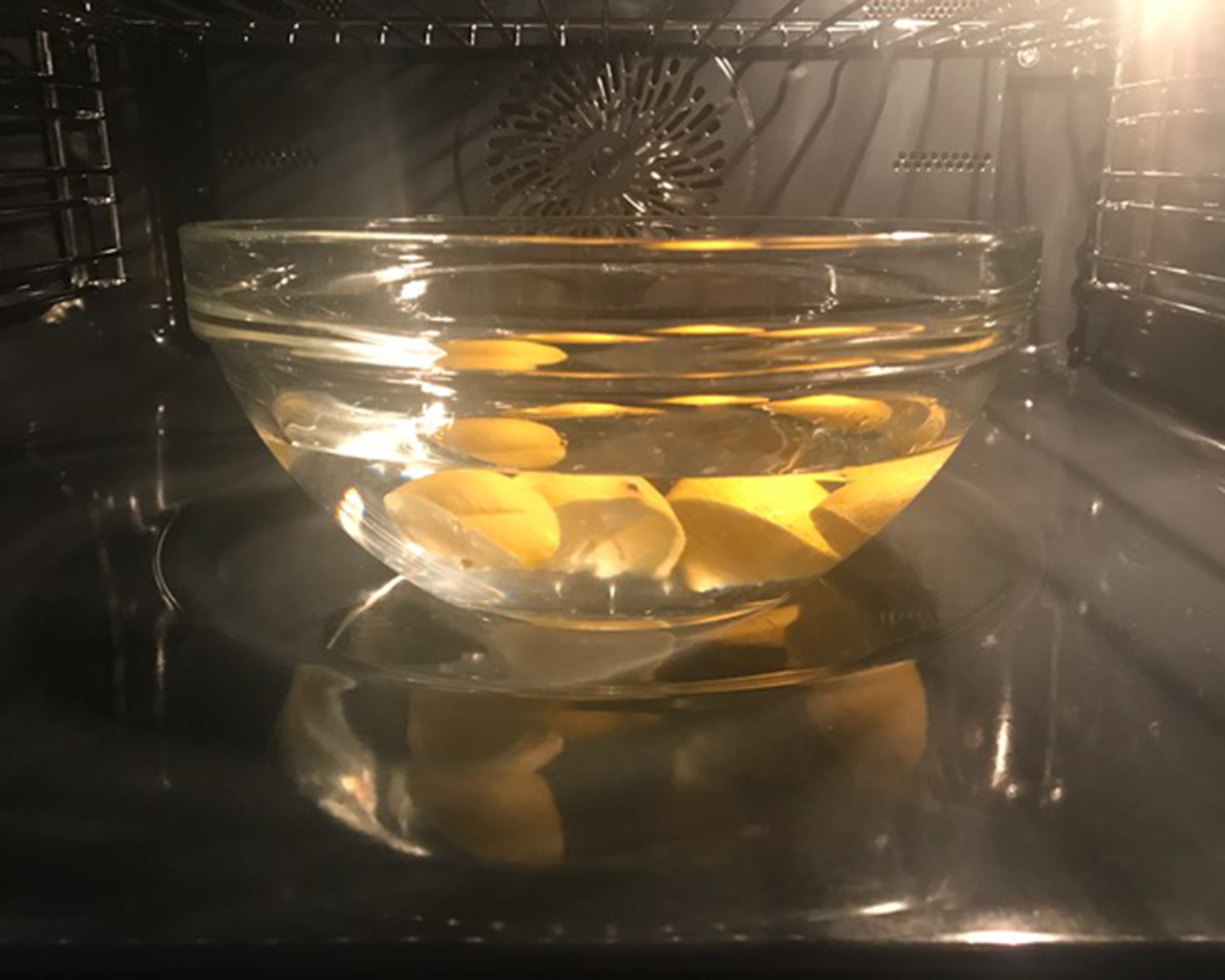 'Pop a microwavable bowl filled with one cup of water and a whole sliced lemon into the microwave for two-5 minutes – depending on the strength of your microwave. And then, get out the door closed for 10-15 minutes after it's finished to give the inside a good steam.'
